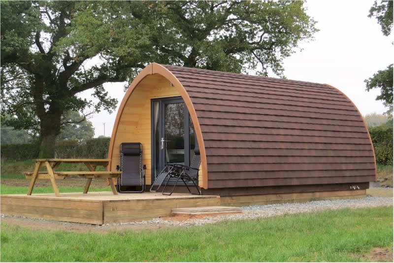 Enjoy self-contained luxury Shropshire glamping pod holidays – our warm, pet-friendly, en-suite pods are hidden away in the beautiful lake-lands of Ellesmere. Relax and listen to the birds singing whilst enjoying panoramic views across the Cheshire Plain and Welsh hills. Modern life means that connectivity is important, so each glamping pod has a free Wi-Fi internet connection. Our broadband is at ‘rural speed’, so we’ve hard-wired the ethernet cable all the way to each pod to get the best available signal. As well as a great dog-friendly location with panoramic views, our pods are equipped as follows: - Double bed with optional single bed if required for a third person. - Underfloor heating - En suite toilet & shower - Microwave oven, fridge & kettle - Smart television with freeview - 13 amp electric sockets with USB charging ports. - Broadband internet connection wired directly into each pod - Cutlery & crockery - Complimentary starter pack supplied with sachets of tea, coffee, sugar and a pint of milk, cleaning materials and toilet paper. - Fire pit for barbecuing - No smoking in the pods. - One dog per pod permitted by arrangement and at additional charge. - For fire safety and to prevent lingering cooking smells, we do not allow indoor cooking other than with our microwave. You may cook outdoors using our fire pit. - We do not have the capacity to permit electric vehicle charging on site. - **Bring your own pillows, bedding and towels, including tea towels. Our beds have clean mattress protectors.**