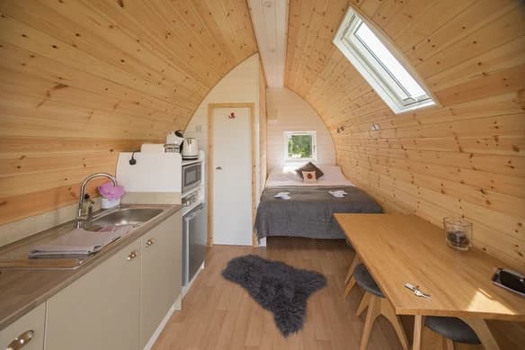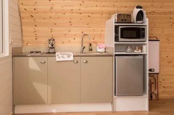 Sleeps : 4 Adults, Extras : Travel Cot, One double bed, one large pull out double bed. Pets are welcome in the pods, however, if they are used to being kennelled on a night there is a stable block adjacent to the pods where they should be very comfortable.