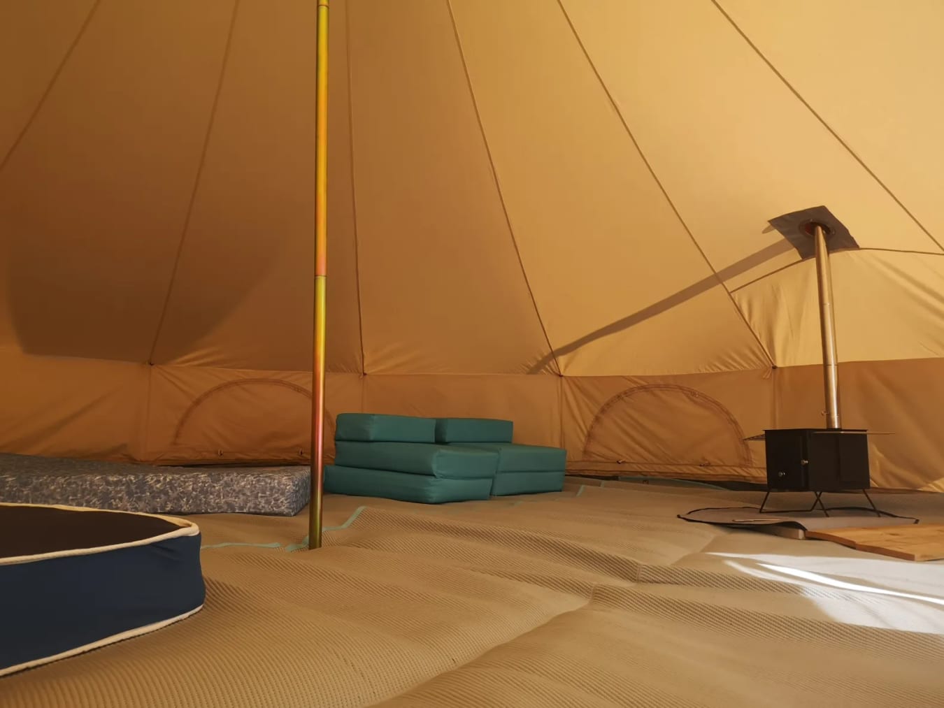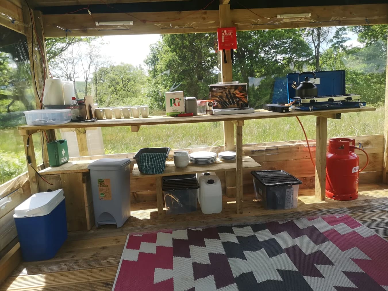This location offers more seclusion and a bit more peace set in approximately half an acre by itself. With all the amenities you require you can enjoy with ease. This site has been designed to have everything you need without all of the clutter that many venues have. We want you to be able to return to basics to enjoy the area as opposed to being too focused on technology. This is off grid and back to basics outdoor living. We have supplied you with a fire kit, along with s’mores to enjoy your evening with us. We clean everything down following a stay with safe4, each stay is a minimum of two nights, bedding/towels etc are not provided. This area has a basic kitchen, 6m bell tent and a picnic table. Within your accommodation you will find beds for 4 guests, a coat stand, your own composting toilet, over night logs and a log burning stove.
