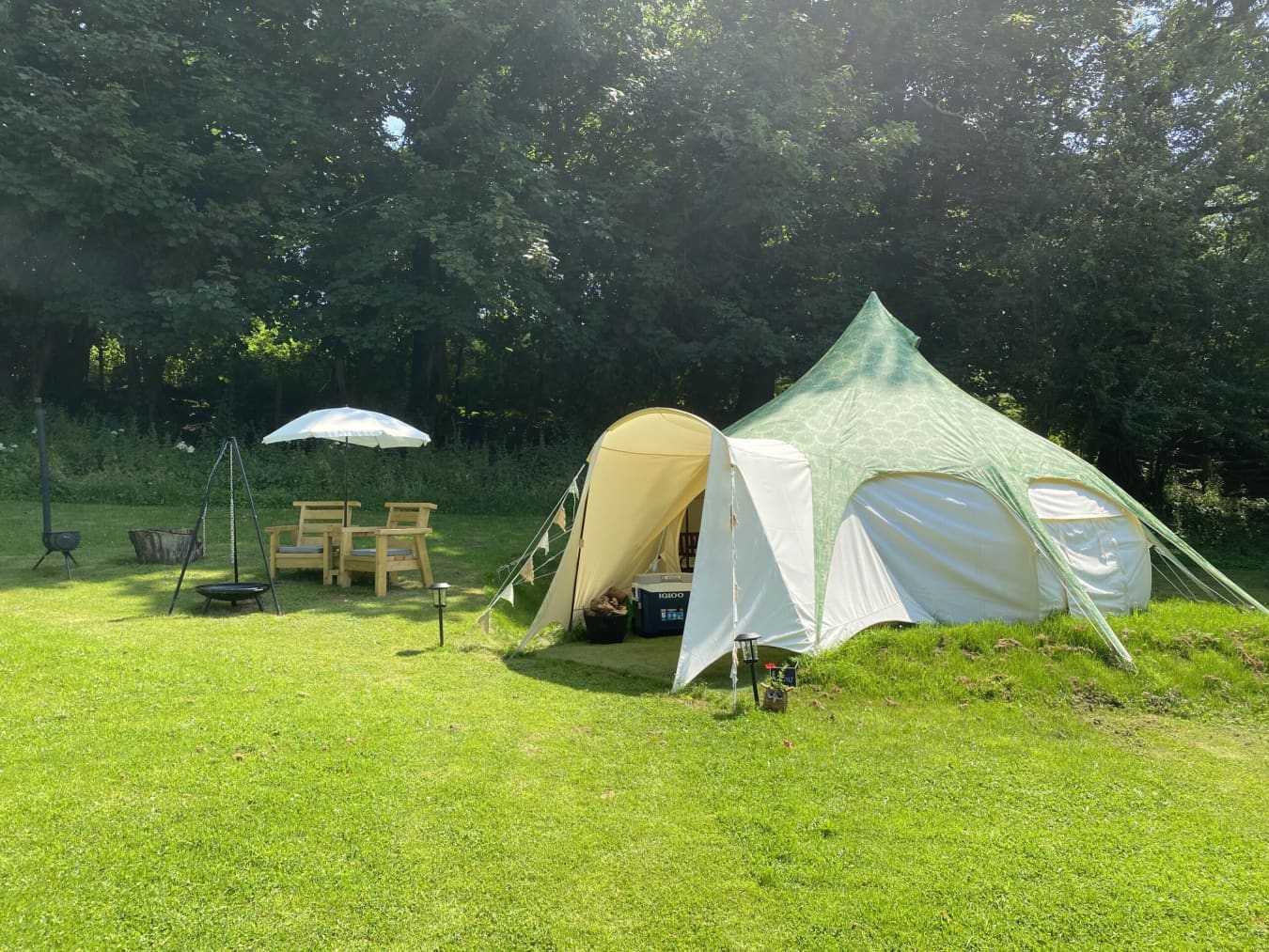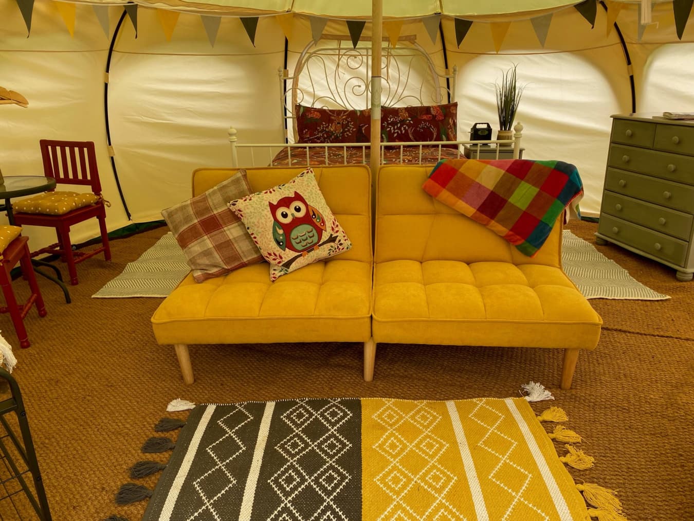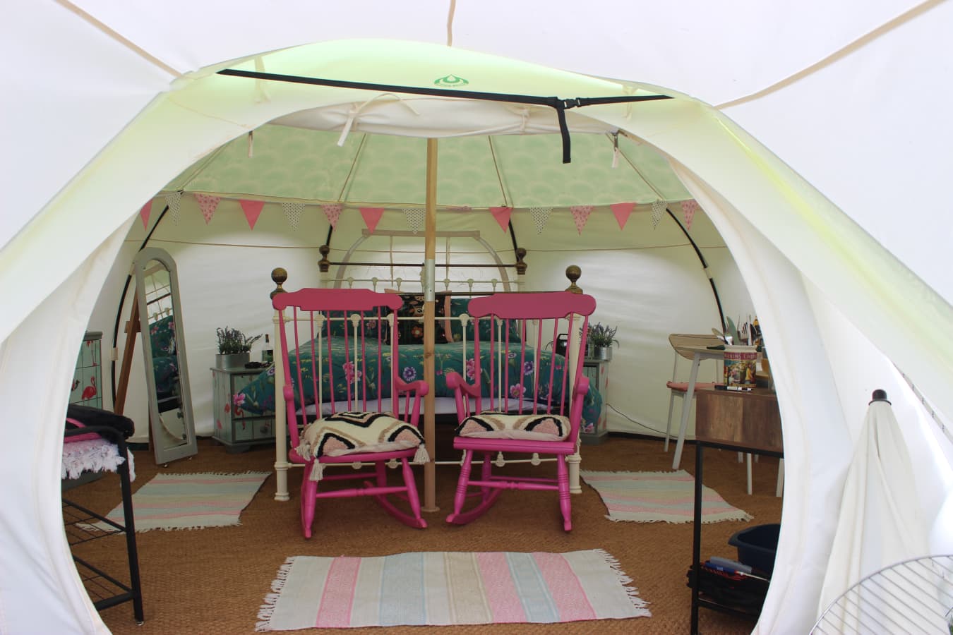 The tents are equipped with Crockery, Cutlery, pans, etc, along with a large cool box to keep your Prosecco cold on the warm evenings. There is an ordnance survey map of the local area, information books and a pair of mini binoculars to help you enjoy your stay. Tea, coffee etc are provided in Cheats Kitchen where you will find the electric kettle, toaster, fridge freezer and mains electric sockets for extra phone charging or hair dryers etc etc.